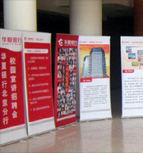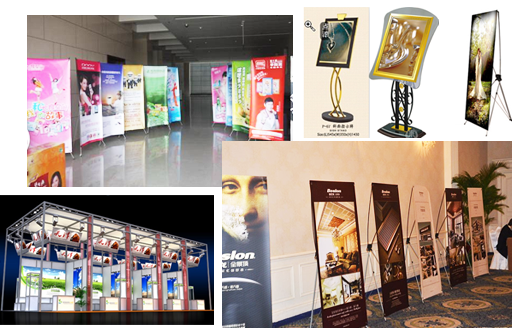 門型展架:門型展架成為近幾年來促銷商家深受信睞的產品,門型框架選材鐵制白噴,造型精美,攜帶方便,輕巧批量定制,材質有鐵底座及工程注塑底座。 快速展架:快速展架是近幾年來流行于各大商業場所的一種新式展架,其結構由立桿、橫梁、底座三部分組成。高密度鋁合金型材為主配件,以ABS工程塑料為主。底座采用4mm厚鐵板噴銀色防銹漆,其便攜、輕巧、簡潔美觀的性能深受消費群體信賴。